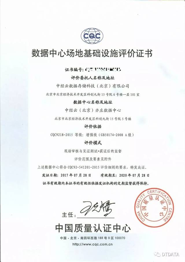 中經(jīng)云北京亦莊數(shù)據(jù)中心于2017年7月通過中國質(zhì)量認(rèn)證中心的評測認(rèn)證,獲得數(shù)據(jù)中心場地基礎(chǔ)設(shè)施A級認(rèn)證,是國內(nèi)第13家通過該級別認(rèn)證的數(shù)據(jù)中心。